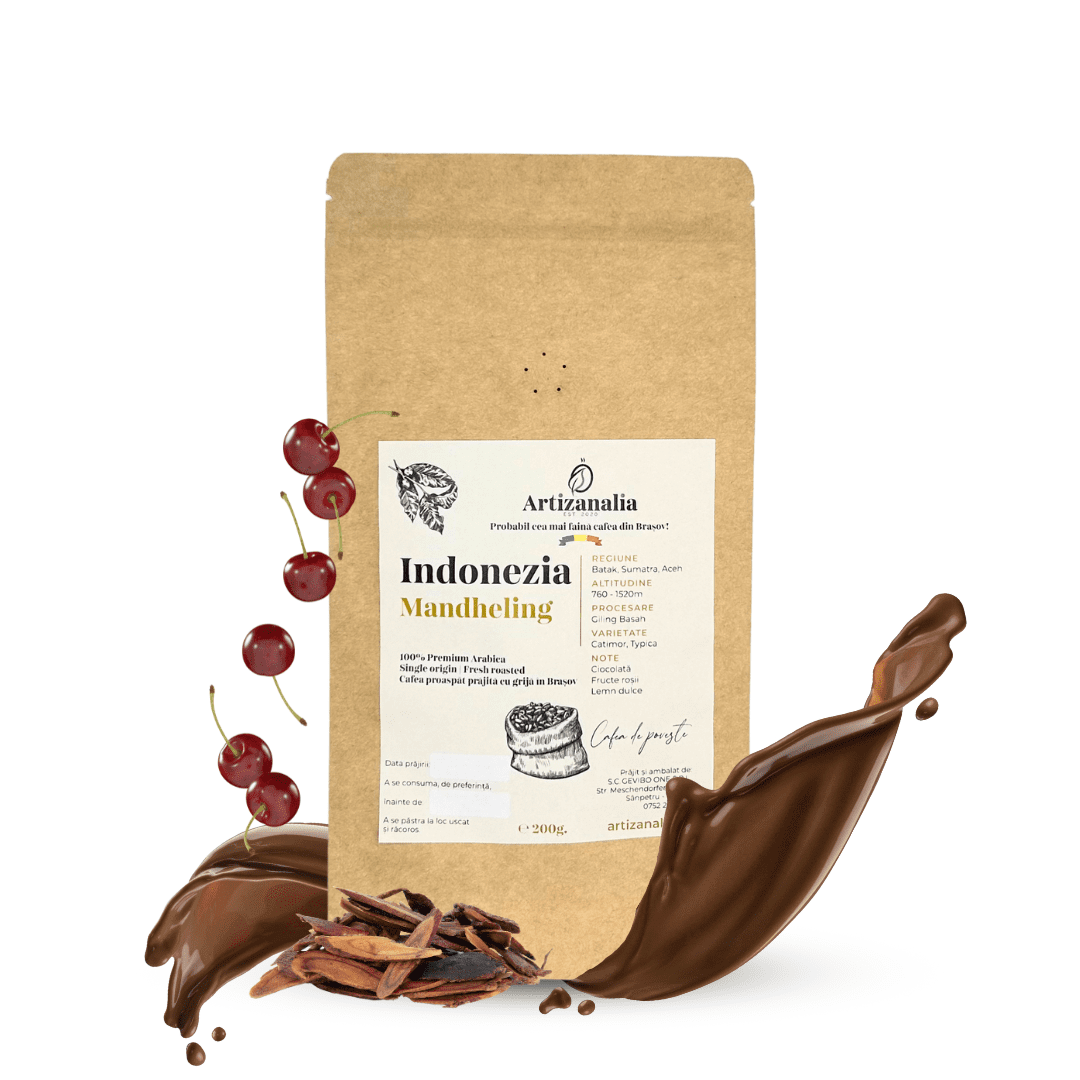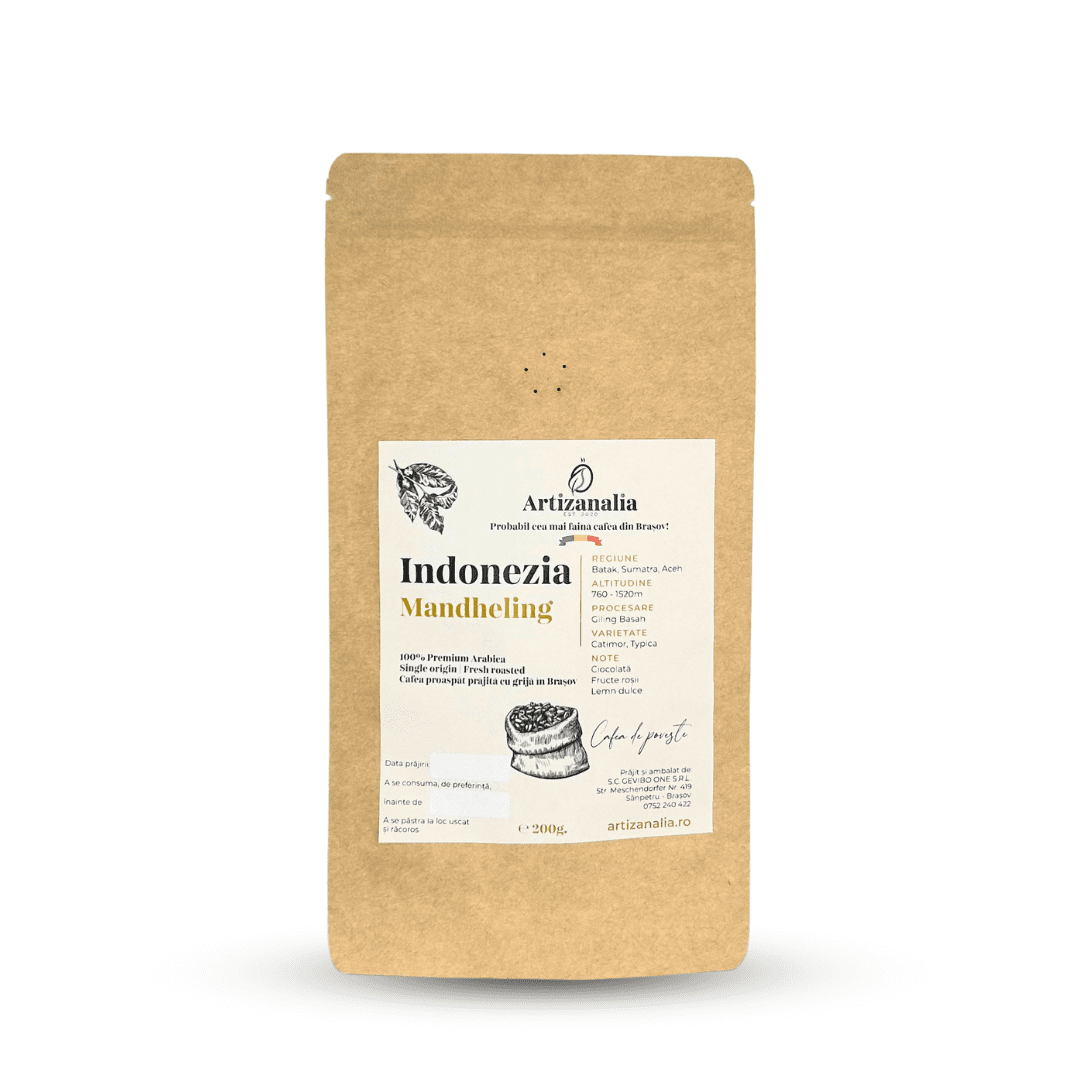 Indonezia Mandheling este o cafea distinctivă, provenind din regiunile muntoase ale insulei Sumatra, Indonezia. Cu un profil de gust robust și complex, această cafea este cunoscută pentru notele sale bogate de fructe roşii, ciocolată neagră și condimente ușor lemnoase, cu un corp plin și o aciditate joasă. Mandheling este obținută prin procesul tradițional de uscare naturală, care conferă boabelor o aromă distinctivă și o textură catifelată. Este ideală pentru cei care preferă o cafea cu un caracter puternic și un gust adânc, perfectă pentru preparare prin metode precum espresso sau filtru. Indonezia Mandheling oferă o experiență de cafea intensă și plăcută, cu un final lung și persistant.